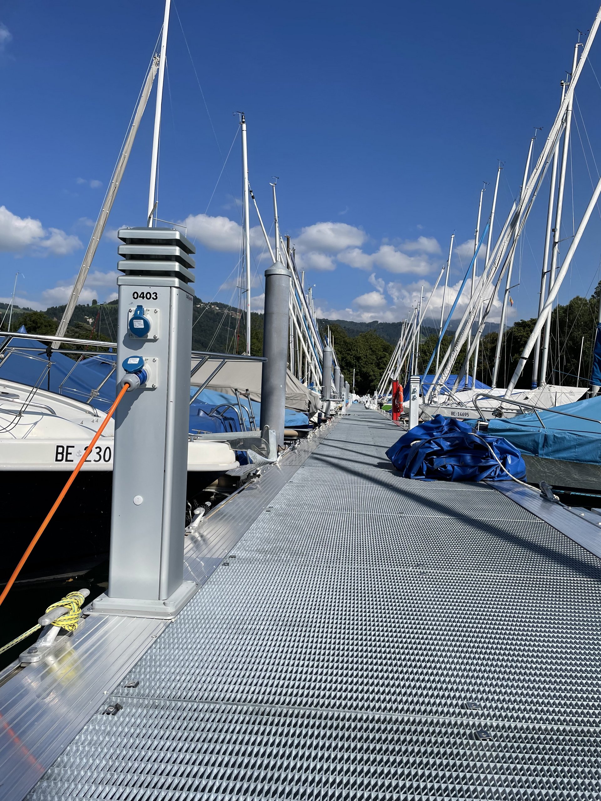 • Benutzerfreundliche Schwimmsteganlage mit breiten, beleuchteten Zugangsstegen und Anbindeauslegern