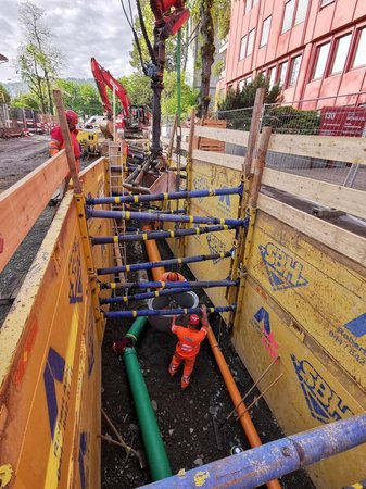 Der innerstädtische Bau unter Verkehr mit eingeschränkten Platzverhältnissen sowie die vielen Anspruchsgruppen stellten eine besondere Herausforderung in der Planung und Ausführung der Arbeiten dar.
