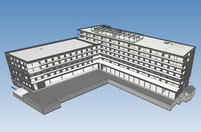 Im Neubau «Senevita» in Münsingen entstehen in den 6 Obergeschossen 80 Alterswohnungen und 50 Pflegezimmer, im Sockelgeschoss Gewerberäume sowie im Untergeschoss eine Einstellhalle. Das L-förmige Hauptgebäude weist einen 8-geschossigen Flügel von ca. 75x20m und einen 6-geschossigen Flügel von ca. 50x20m auf. Die im Innenhof angegliederte Einstellhalle mit 50x15m und der bahnhofseitige Schutzraum von ca. 25x15m sind komplett im Erdreich eingebunden. Die Erschliessung der Pflegezimmer und Alterswohnungen bezüglich der Haustechnik ist komplex und erfordert eine hohe dichte von Steigzonen in einem regelmässigen Raster. Um der Haustechnik den erforderlichen Platz und Flexibilität zu bieten wurde das Gebäude zu einem grossen Teil als Skelettbau in Stahlbeton erstellt.