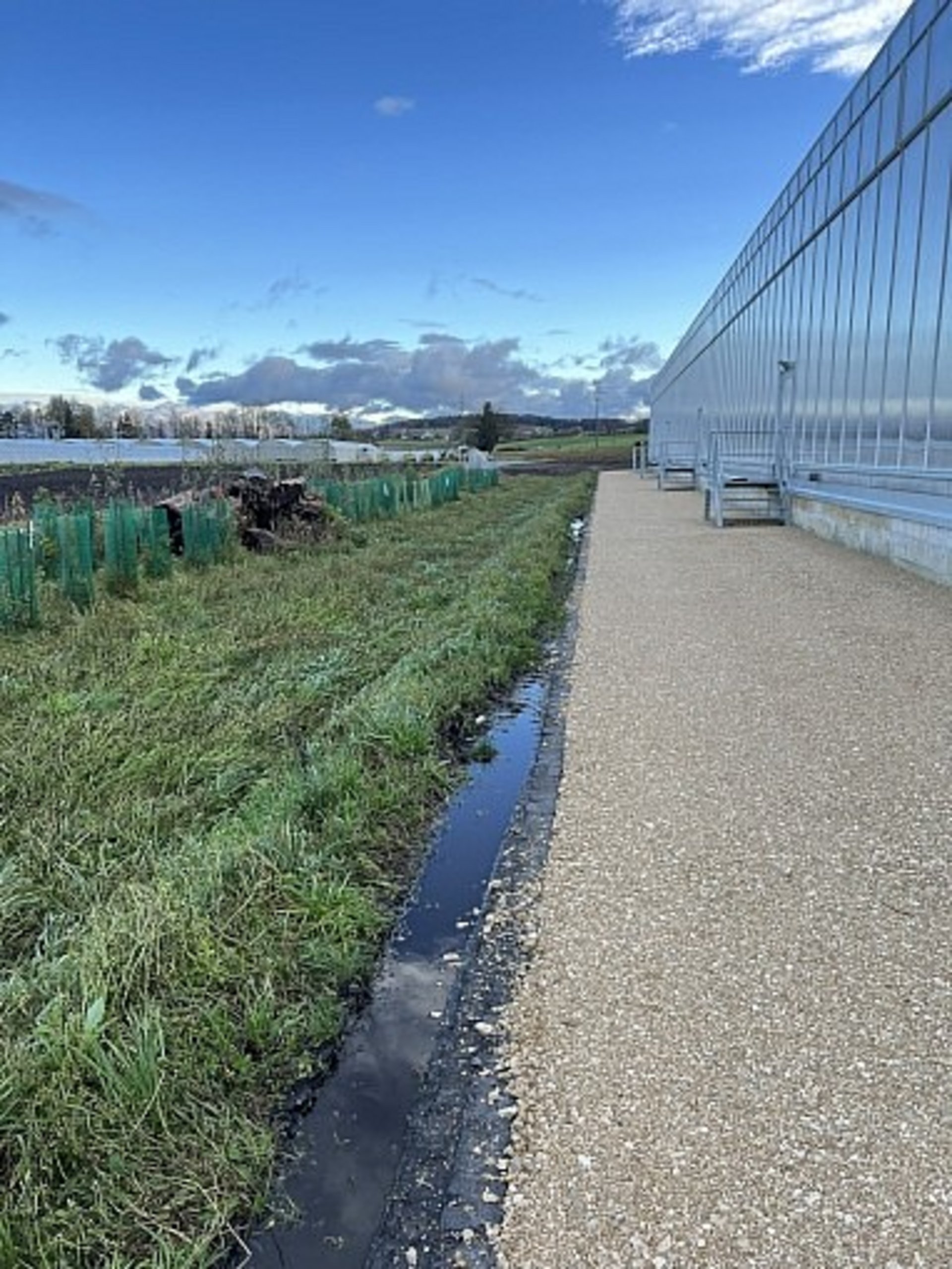 Die Blumenbörse Bern realisierte in Kerzers eine neue Verkaufs- und Lagerhalle inklusive Pflanzhäusern, Logistik und grosszügigem Parkangebot für die Kunden. Das Erdgeschoss des ca. 115 m langen, zweigeschossigen Hauptgebäudes besteht aus einem Massivbau. Das Obergeschoss, sowie der Anlieferungsbereich und die überdachten Parkplätze bestehen aus einer Skelettkonstruktion aus Schweizer Holz. Die Bodenplatten tragen als Stahlbetondecken auf den Pfahlriegeln.