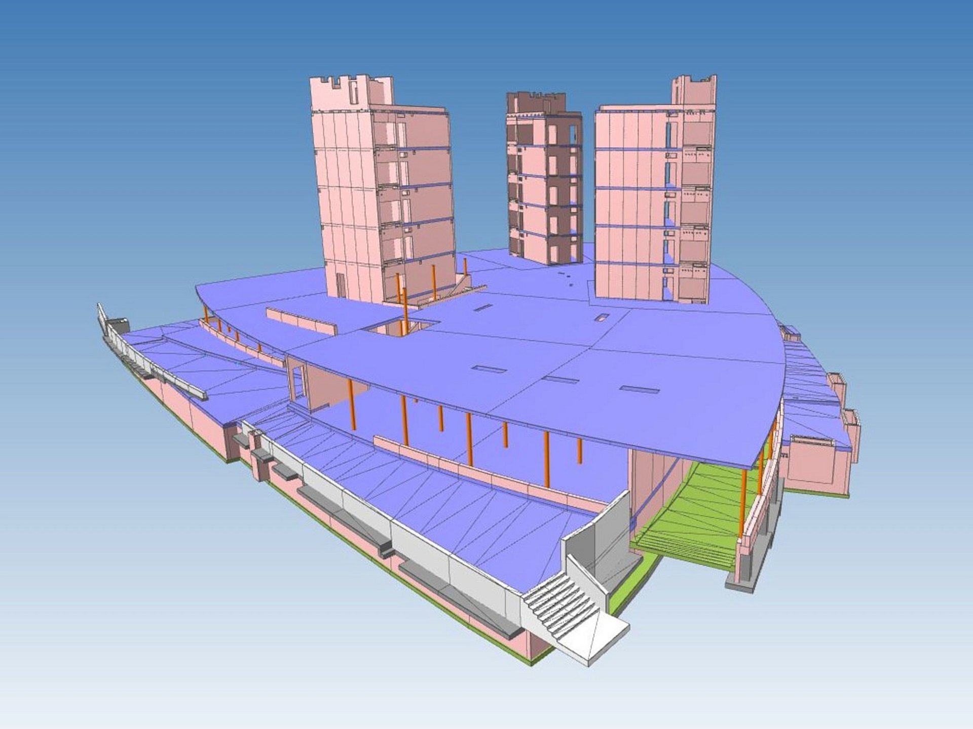 Die gerundete Grundrissgeometrie ohne rechte Winkel bildetet in der Planung und Ausführung eine grosse Herausforderung und erforderten eine modellbasierte Zusammenarbeit nach BIM-Methodik.