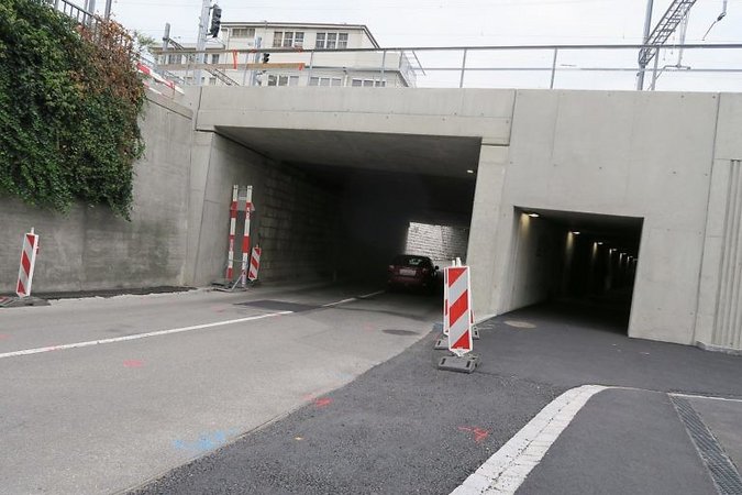 lung von neuen Kunstbauten im Gleisbereich projektiert und ausgeführt. Das Kernstück des Projekts ist der Ersatzneubau der Personenunterführung, welcher seitlich neben den bestehenden Gleisen vorfabriziert und an einem Intensivbau-Wochenende im Juli 2017 an seine endgültige Lage verschoben wurde. Mit dem Einbau eines zusätzlichen Mittelperrons musste die Gleislage angepasst werden. Aus diesem Grund wurde die Verlängerung der bestehenden Strassenunterführung Burgdorfstrasse erforderlich. Die neue Brückenplatte wurde in Hochlage betoniert und mittels hydraulischen Pressen in die Endlage abgesenkt.