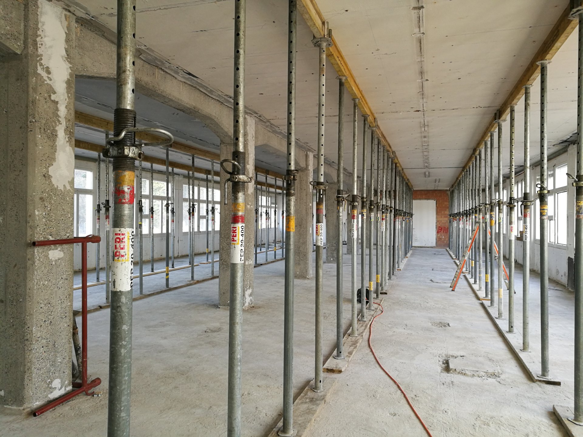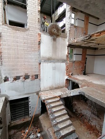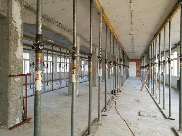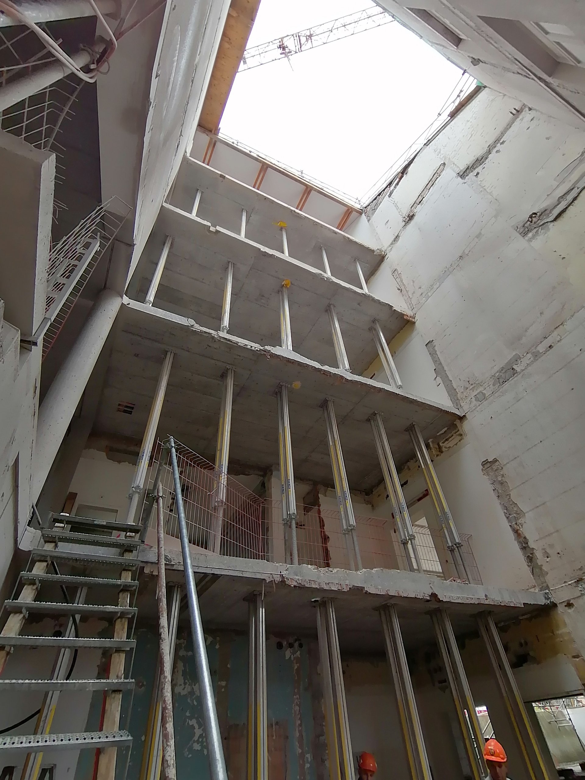 Für die Zugänglichkeit mussten jeweils neue Treppenhäuser und Liftanlagen erstellt werden. Dazu wurde in diesen Bereichen die bestehenden Decken und Innenwände abgebrochen und im inneren von unten bis oben neu aufgebaut.