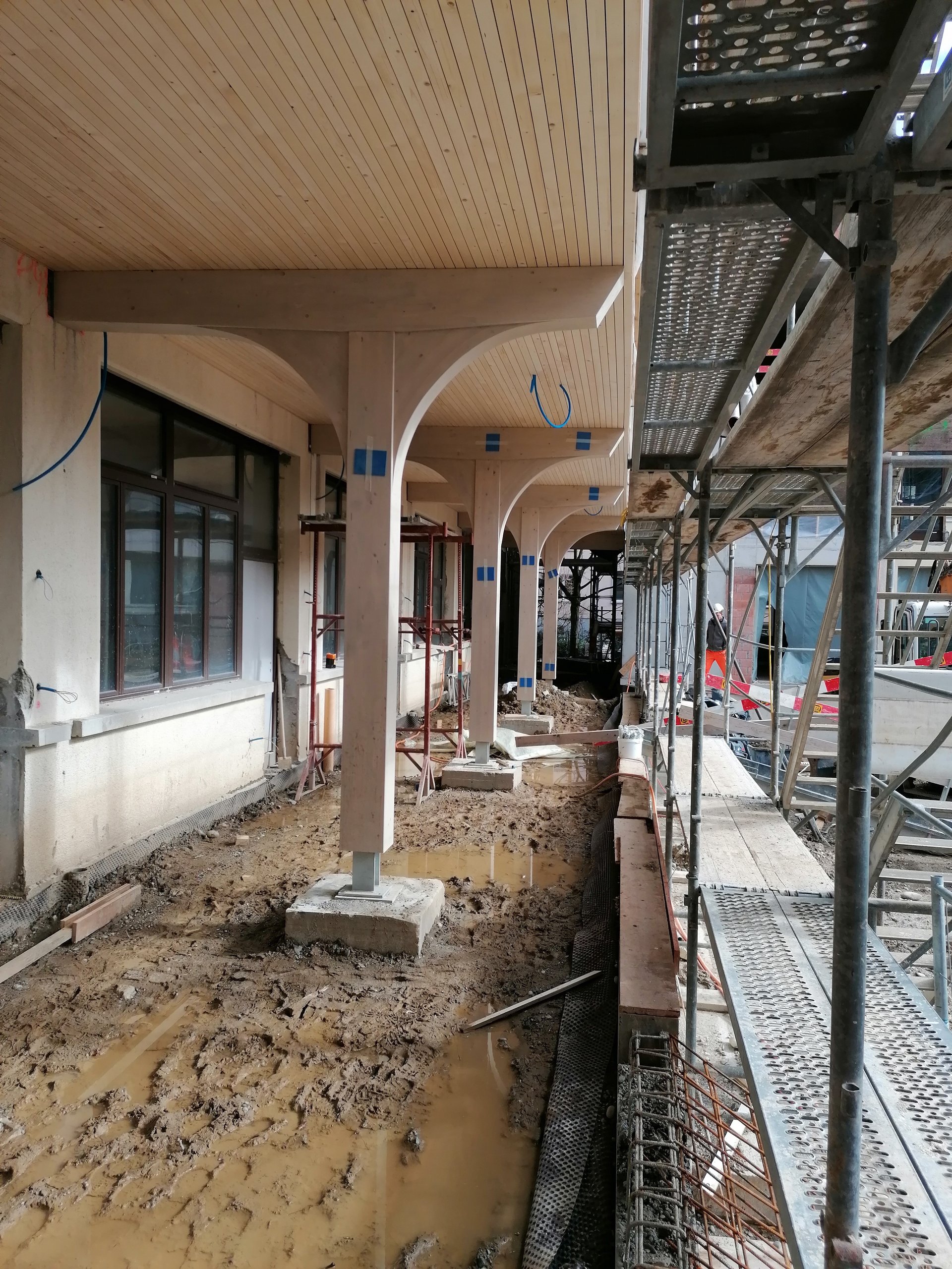 Zur Erdbebenertüchtigung wurden zusätzliche Stahlbetonwände erstellt. Eine weitere Herausforderung war zudem, dass für die Haustechnikerschliessung eine grosse Anzahl neuer Steigzonen erstellt werden mussten und die Gebäude teilweise Hourdisdecken aufwiesen.