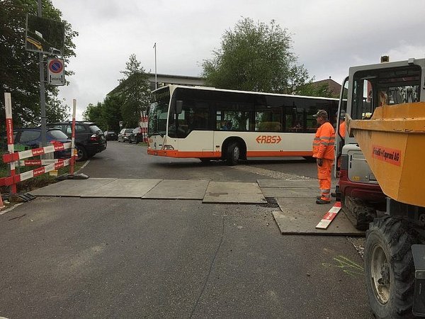 Die gesamte Baustelle ist komplett im Strassenbereich. Die Bauarbeiten werden etappenweise und unter Verkehr mit Busbetrieb ausgeführt. Gleichzeitige Sicherstellung Ver-/Entsorgung und Zufahrt der privaten Liegenschaften.